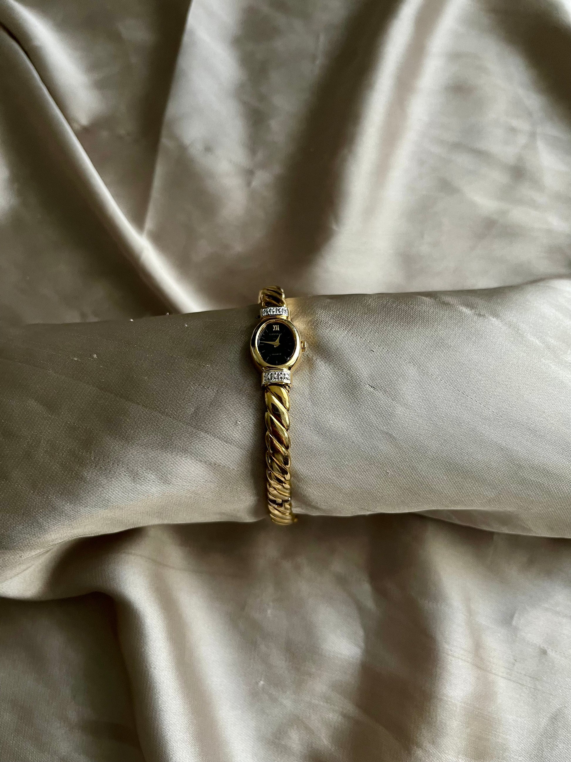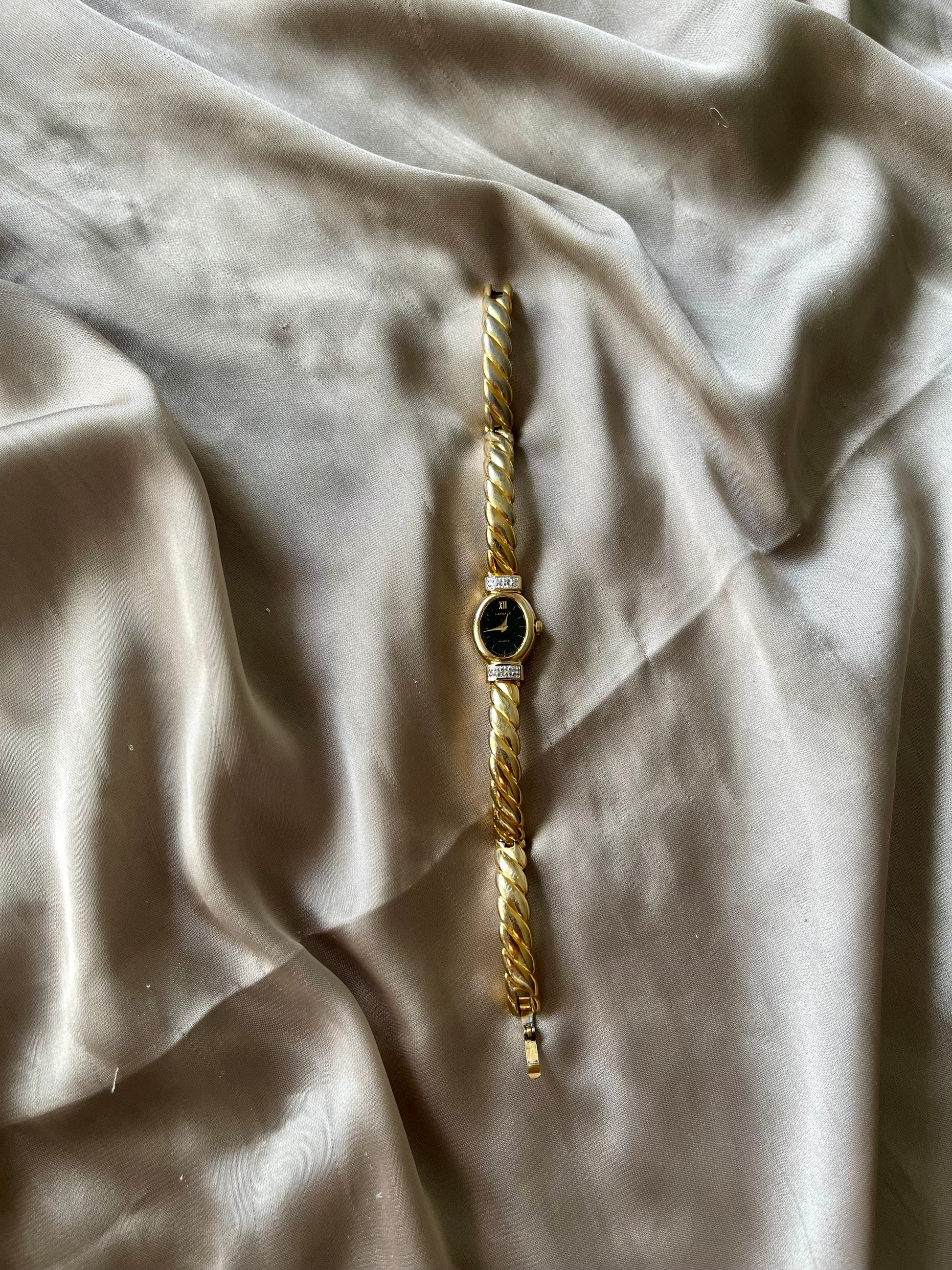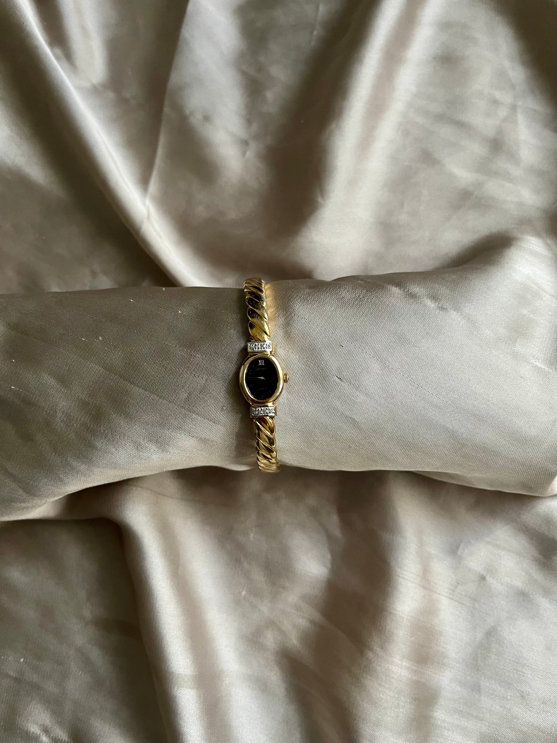 - Brand: Lassale (Seiko) Gold Plated with four diamonds on each side